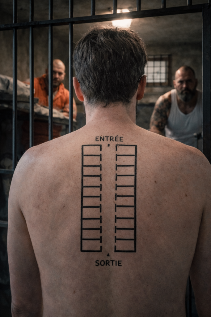 En attendant j’ai un plan pour sortir. Dédé m’a tatoué le plan de la prison sur le dos…