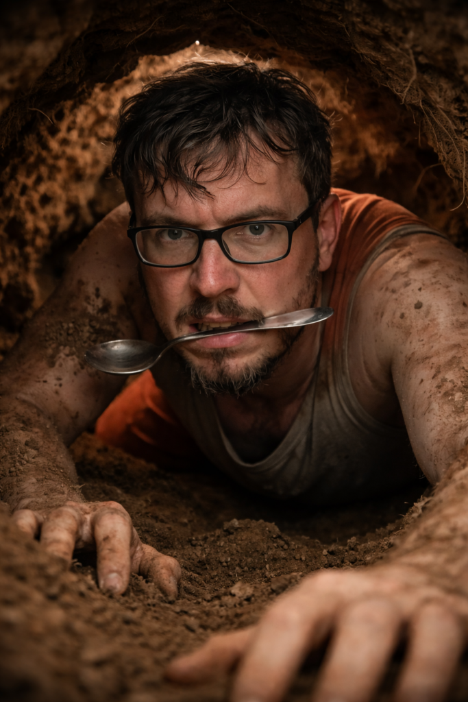 Après deux jours a creuser mon tunnel est enfin prêt. Je sors!